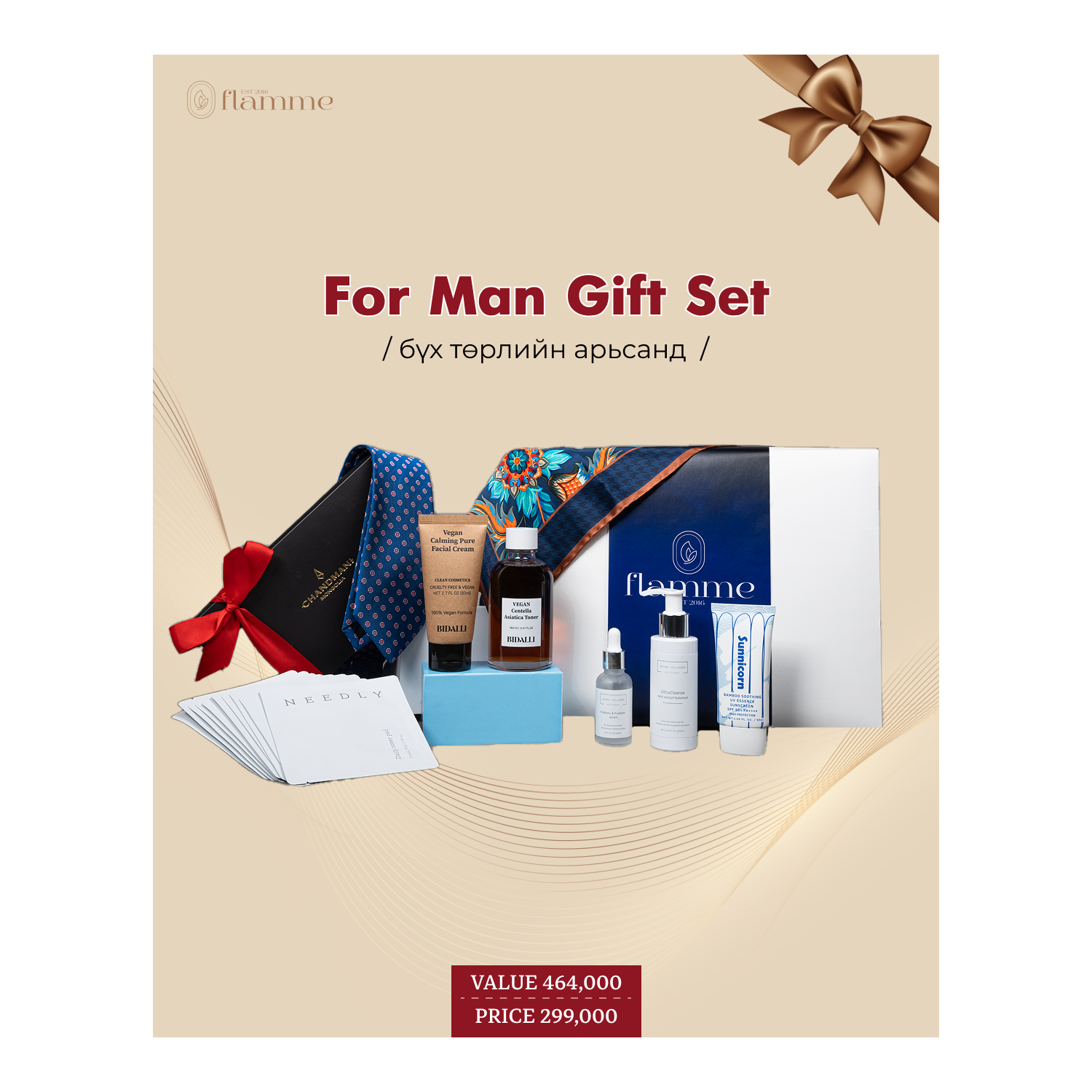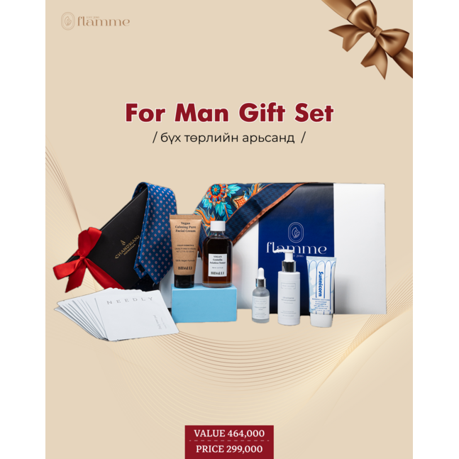 Энэхүү багц нь Chandmani брэндтэй хамтран дотроо арьс арчилгааны бүх шатуудыг нэг дор багтаасан ба Chandmani брэндийн тансаг 100% торгон алчуур, гоёмсог зангианы хамтаар...